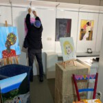 Nachdem unsere Vorstände am Wochenende die Beleuchtung und Aufbauten zum Aktionstag Orange your City wieder abgebaut hatten, wurde die Gelegenheit genutzt und die Galerie Kunstraum neu bestückt. Sarah Bauer räumte ihre Bilder ab, dabei wurde auch klar Schiff gemacht und unser Neumitglied Meltem Fakkusoglu ist ab heute, den 28.11.21 dort zu sehen. Frank Ziese, unser Mann für alles, war wie immer dabei und hat beide tatkräftig unterstützt.
