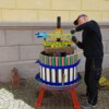 Dem Verein wurde eine alte Weinpresse überlassen, mit der Option diese frei gestalten zu können. Unsere beiden Vorstände, Hans-Dieter Mocka und Frank Ziese, haben auf Grund der aktuell geltenden Beschränkungen, mit viel Abstand das Projekt in den letzten vier Wochen alleine durchgeführt. Ein dickes Dankeschön an die Beiden für Ihren immer wieder unermüdlichen Einsatz, nicht nur bei dieser Aktion. Sie sind immer zur Stelle, wenn es etwas zu organisieren gibt oder eine handwerkliche Umsetzung nötig wird. Wie man sieht haben sie ihrer Kreativität freien Lauf gelassen und es ist ein kunterbuntes Objekt entstanden, das künftig als Entrée und Wegweiser fungiern soll. Der Standort wird an der Ecke Lindenstraße/Hofstraße sein.